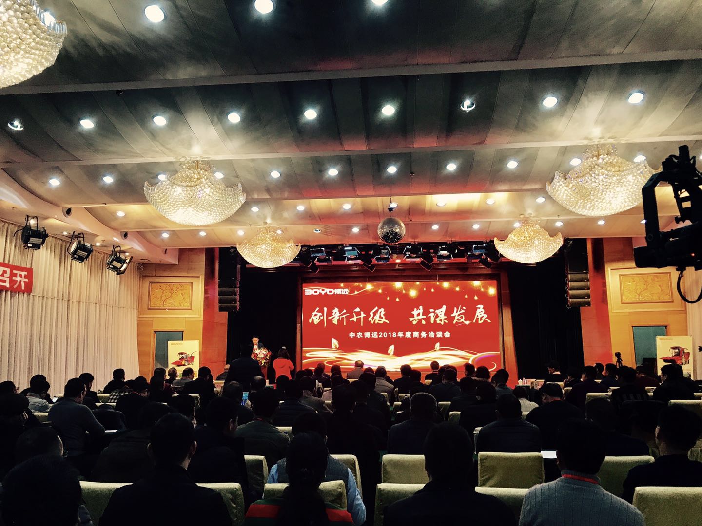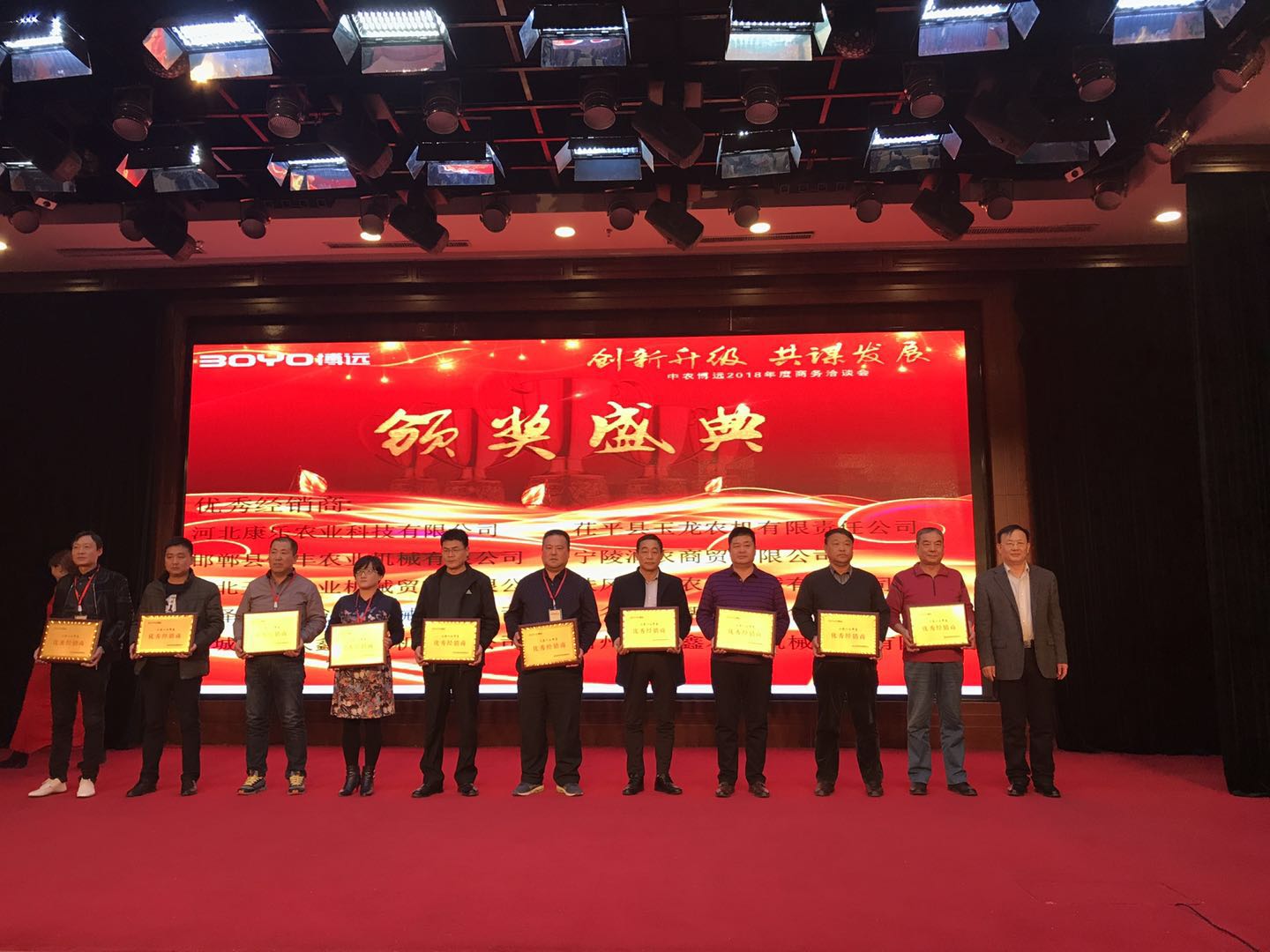 中农博远总经理张国彬在会上作了以“创新蝶变亮剑2018”为主题的讲话。他说,2017国内玉米机行业面临结构调整、粮食价格、机器保有量机补贴降低等一系列不利因素,行业总体销量下滑幅度较大,全国累计销售各种型号玉米收获机仅有3.8万台左右,同比下滑高达40%,玉米机制造企业洗牌加速,全年减少了80-90家。面对严峻的市场环境,中农博远秉承工匠精神,在产品稳定性、可靠性、农艺融合性等方面陆续提升产品质量,固守黄淮海玉米机竞争主战场,巩固并稳固扩大陕甘宁市场,抢占东北市场,同时利用玉米机销售网络优势,积极拓展深松机和果园机械系列产品市场,实现销售各类产品3000余台、总销量额4.5亿元的业绩。其中,玉米机销售保持在行业前三水平,成为全国玉米机销售最多的农机制造企业。